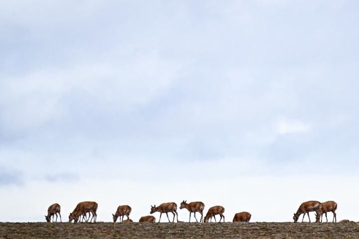 藏羚羊在青海可可西里五道梁地區(qū)遷徙(2024年5月27日攝)。新華社記者 張龍 攝