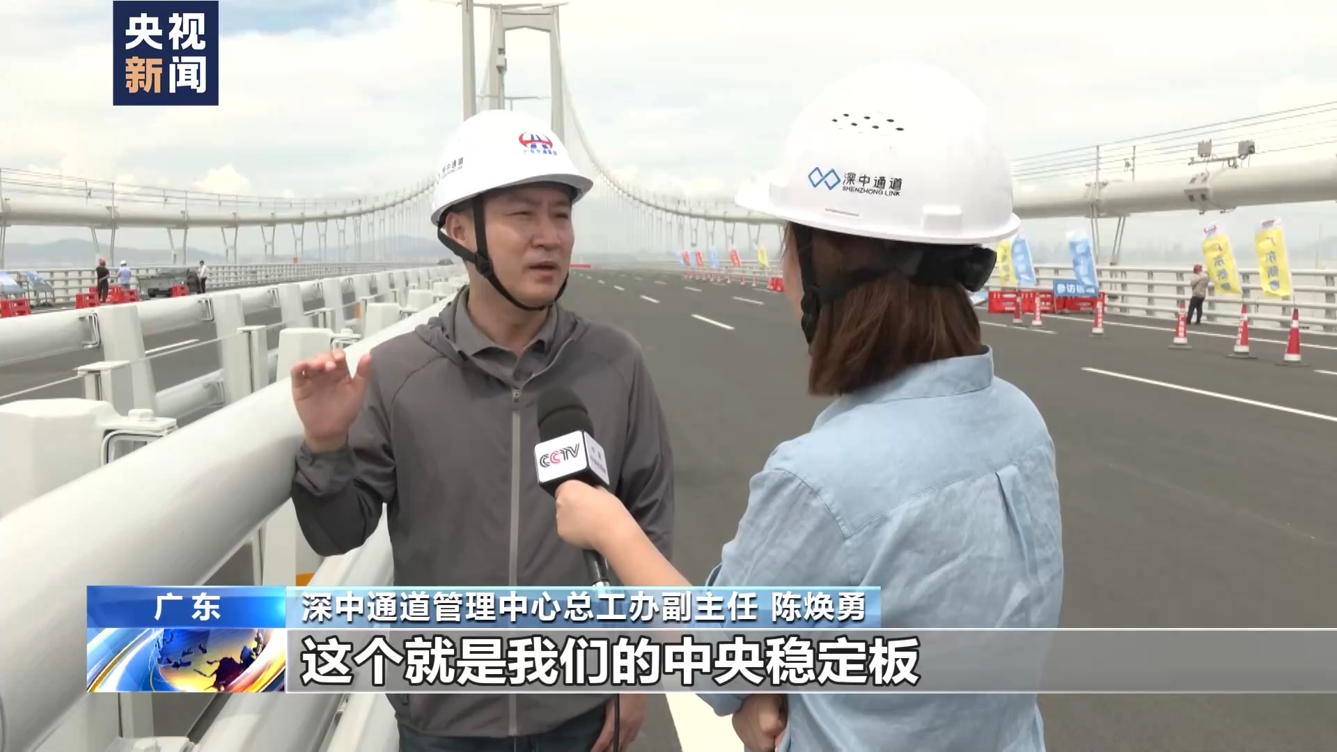 深中通道管理中心總工辦副主任陳煥勇介紹,這個就是我們的中央穩定板,主要目的就是提高深中大橋抗風的穩定性。阻礙在強風作用下渦旋的發展,從而提高顫振的穩定性。
