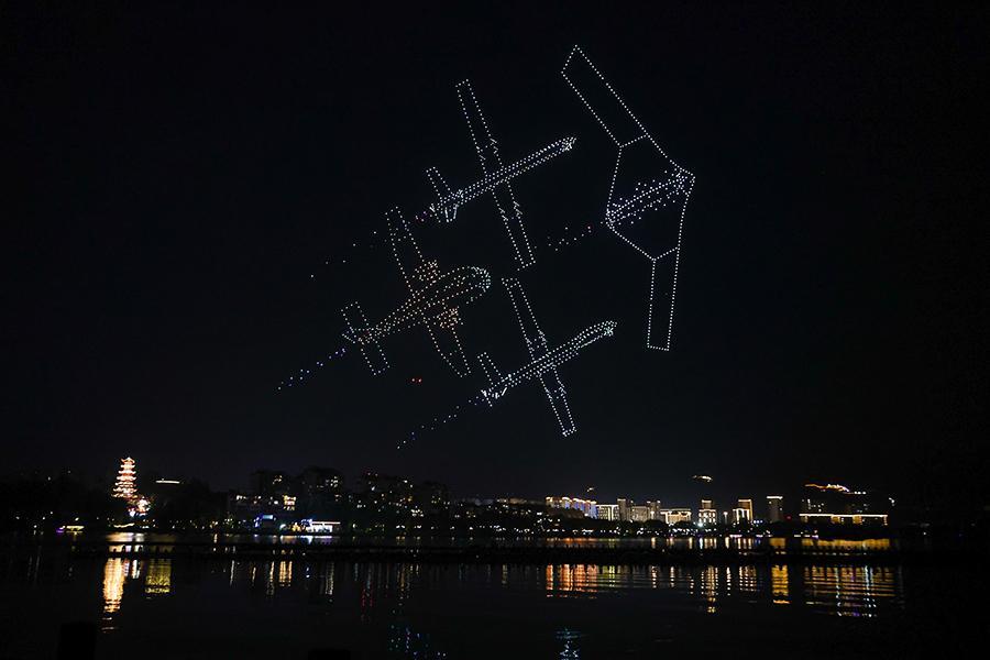 在這場(chǎng)表演中,深圳大漠大智控技術(shù)有限公司的11787架無(wú)人機(jī),以“最多無(wú)人機(jī)組成的空中圖案”創(chuàng)下吉尼斯世界紀(jì)錄。
