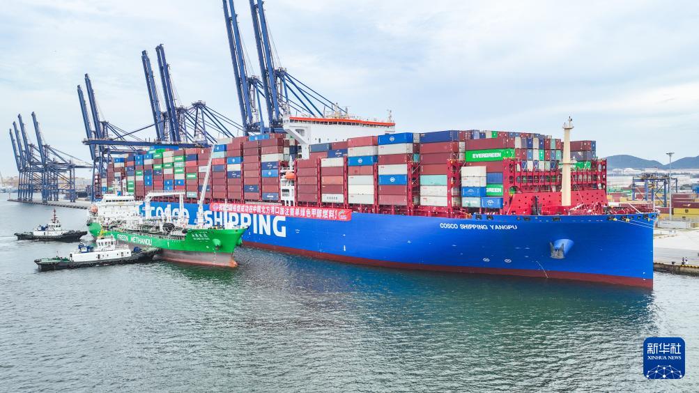 7月上旬的一天,海南洋浦港傳來兩聲悠長的汽笛聲,“中遠海運洋浦”輪緩緩靠泊。隨著200噸以城市餐廚垃圾、動物糞便等為原料制成的國產(chǎn)綠色甲醇加注上船,我國首艘國產(chǎn)雙燃料(甲醇+柴油)船舶實現(xiàn)首次綠色甲醇加注,國內(nèi)航運綠色轉(zhuǎn)型邁出關(guān)鍵一步。