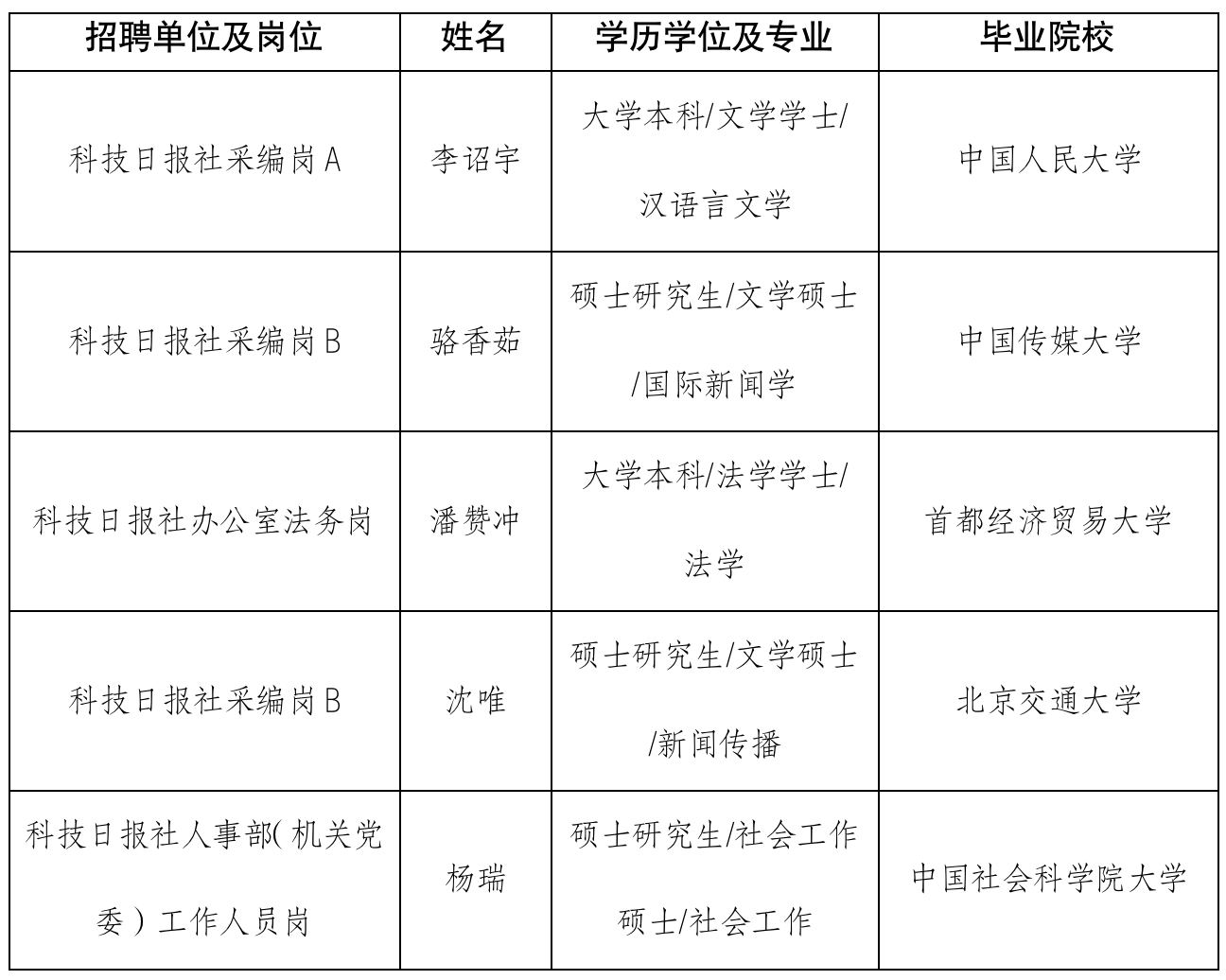采編崗B擬招聘3人,此次公示2人。有1名應聘人員尚未完成招聘程序,另行公示。