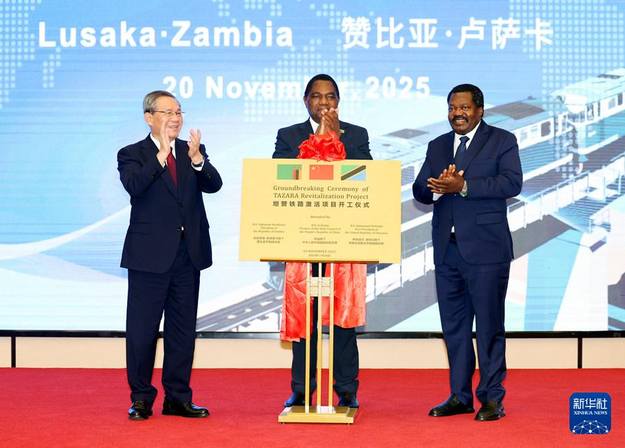 新華社盧薩卡11月20日電(記者劉暢 彭立軍)當(dāng)?shù)貢r間11月20日,國務(wù)院總理李強在盧薩卡同贊比亞總統(tǒng)希奇萊馬、坦桑尼亞副總統(tǒng)恩欽比共同出席坦贊鐵路激活項目開工儀式。