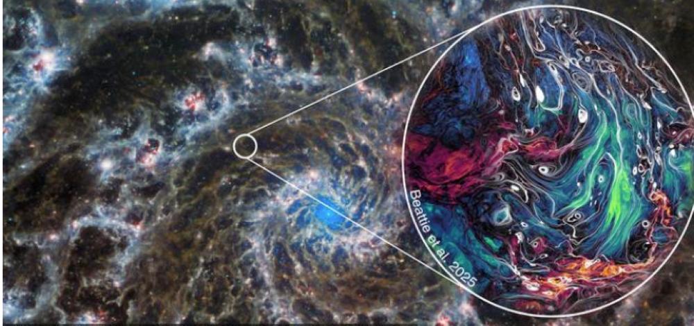 湍流普遍存在于星際、大氣、海洋、江河等自然現(xiàn)象和飛行器尾流、燃燒器燃燒等工程現(xiàn)象中。湍流問題是力學(xué)中一個復(fù)雜的問題,足夠人們終其一生去研究。天體物理環(huán)境中的湍流與地球上的湍流略有區(qū)別,關(guān)鍵在于磁場。借助超級計算機的計算能力,科研人員開發(fā)出一種模擬技術(shù),能以更高分辨率對星際介質(zhì)中的磁力和湍流進行觀察。這種模型讓我們了解磁場如何引導(dǎo)氣體流動、影響恒星誕生,并更加清楚如太陽風(fēng)暴之類的宇宙天氣對地球的影響。