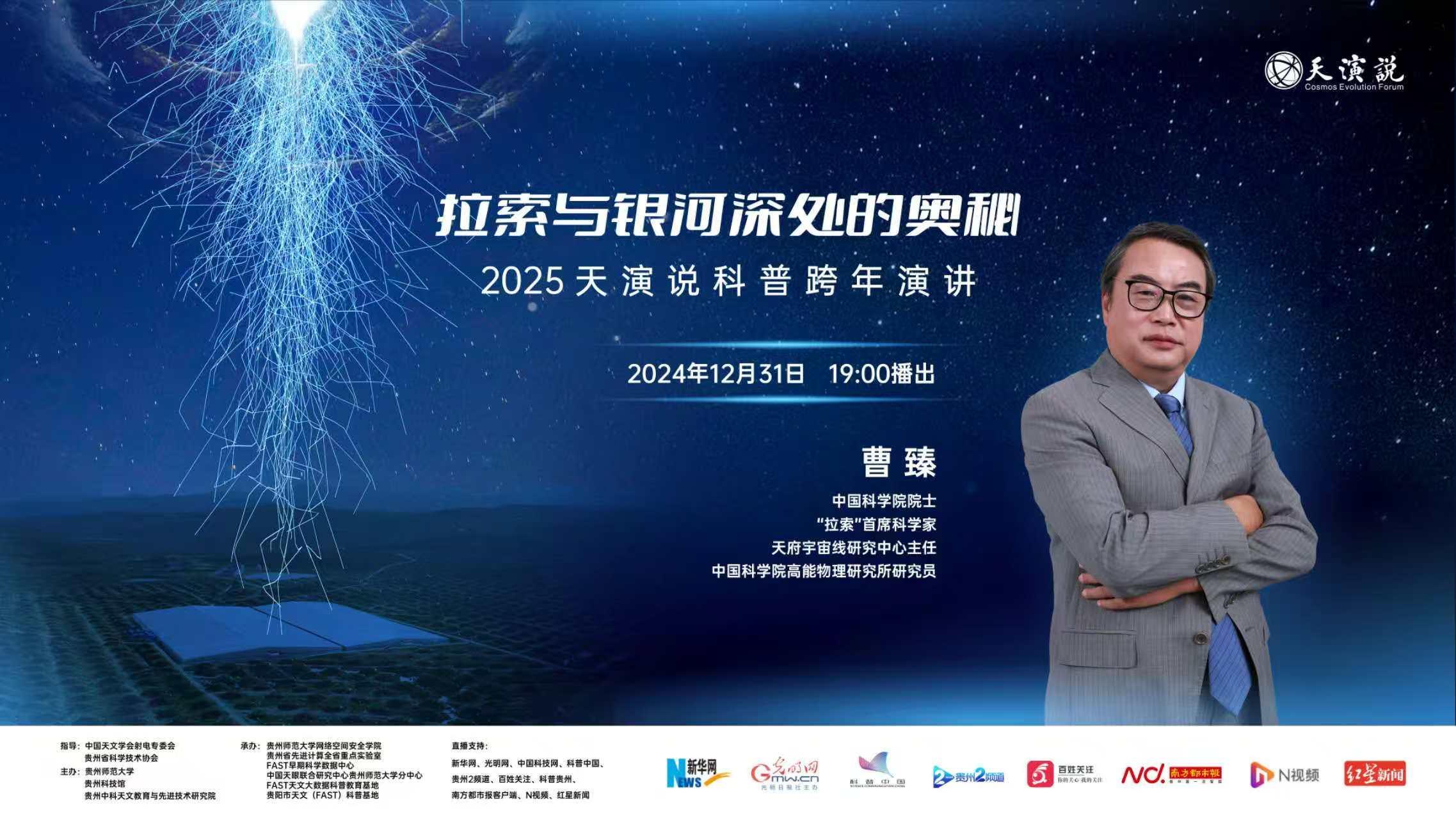 在人類探索宇宙的壯麗史詩中,高海拔宇宙線觀測站-拉索(LHAASO)猶如一顆劃破黑暗的科學之星,閃耀著璀璨光芒。12月31日19:00(周二),2025天演說科普跨年演講邀請中國科學院院士曹臻研究員,帶大家深入了解國家大科學裝置——拉索。
