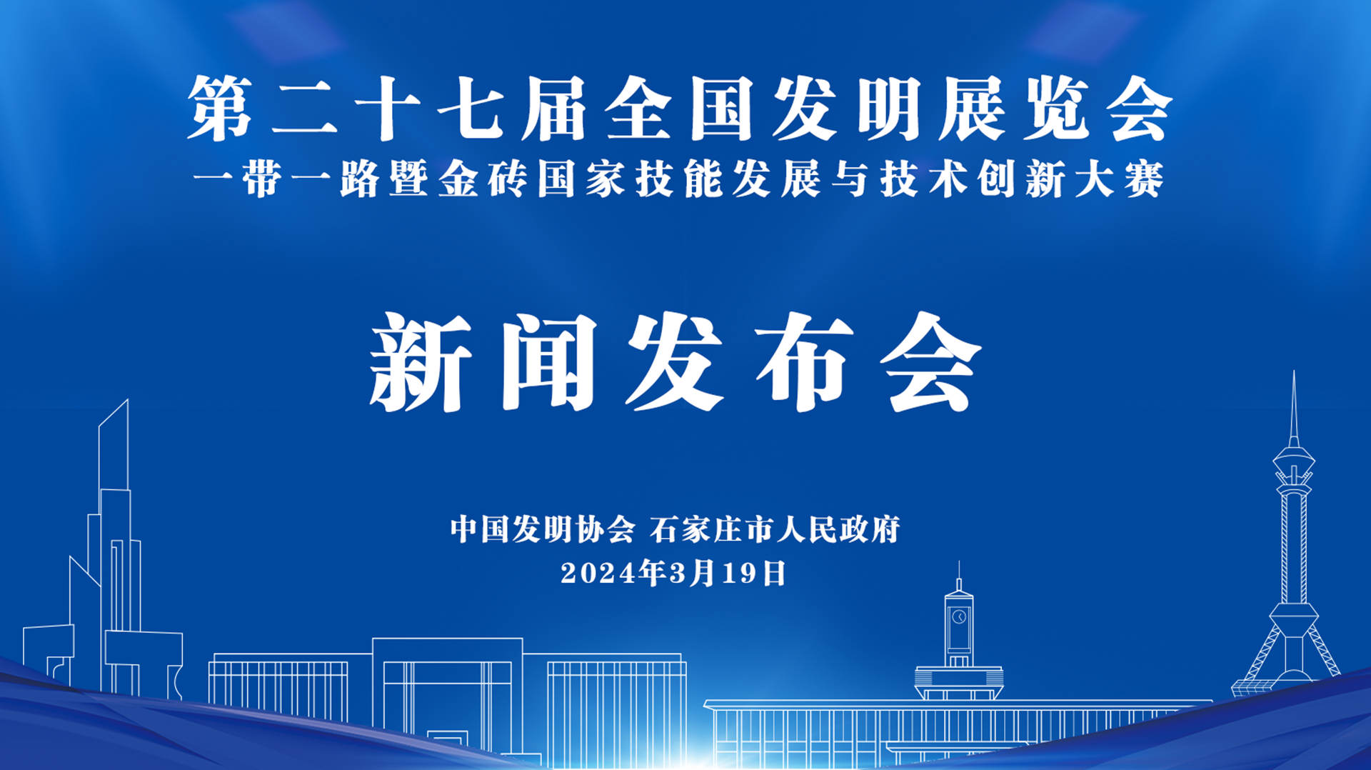 中國發明協會與石家莊市人民政府于3月19日上午10:00在北京舉行“第二十七屆全國發明展覽會一帶一路暨金磚國家技能發展與技術創新大賽”新聞發布會,介紹本屆展會大賽主要亮點、特色和籌備工作情況。